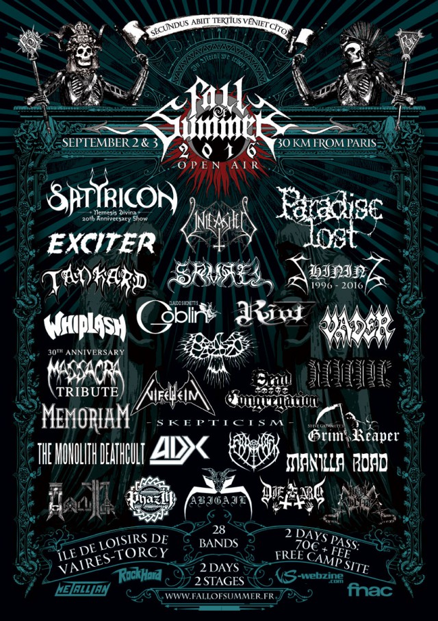 SATYRICON – PARADISE LOST – SAMAEL – EXCITER – UNLEASHED – SHINING (sw) – TANKARD – WHIPLASH – CLAUDIO SIMONETTI’S GOBLIN – RIOT V – VADER – MASSACRA TRIBUTE – DEAD CONGREGATION – NIFELHEIM – MEMORIAM – SKEPTICISM – THE MONOLITH DEATHCULT – ADX – GRIM REAPER – MANILLA ROAD – PHASM – DIE HARD – HEXECUTOR – MERRIMACK – ORANSSI PAZUZU – REVENGE – ABIGAIL – HELL MILITIA